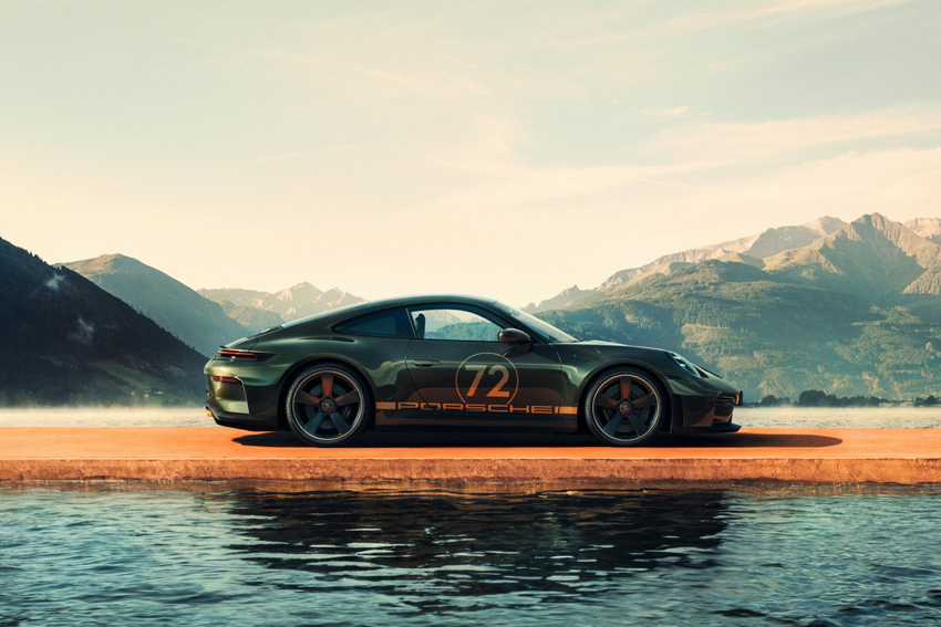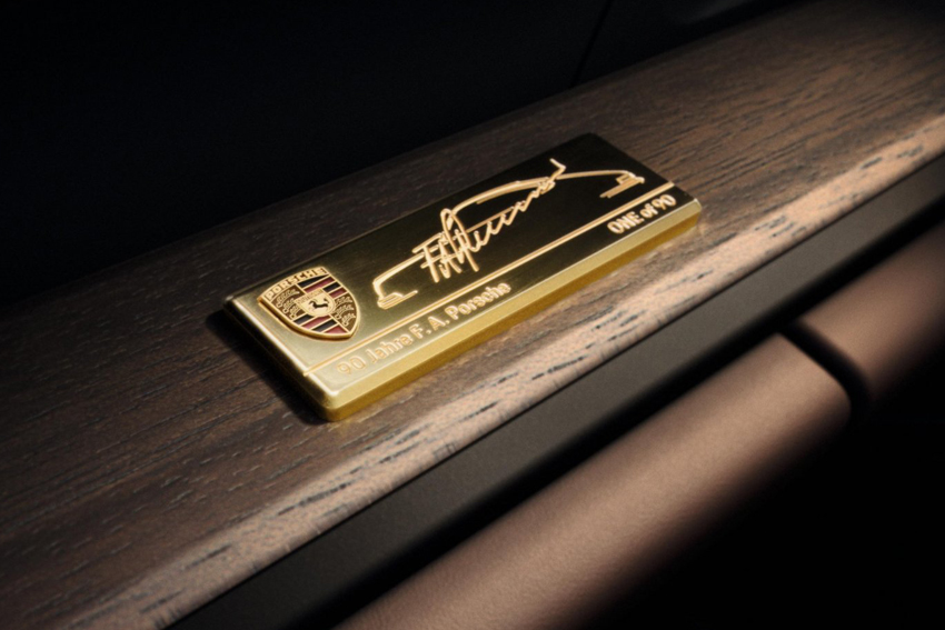 Elle bénéficie également d'une nuance de vert, le Vert Métallisé F.A., inspirée du Vert Chêne métallisé emblématique de la 911 personnelle de F.A. Porsche. Les jantes Sport Classic peintes en noir avec une finition satinées sont également une réalisation qui sera réservée exclusivement à cette édition spéciale. Parmi les autres détails de finition exclusif, on observe, en autres, la fixation centrale et les écussons historiques de 1963 sur les jantes ainsi que la plaque dorée portant le logo "90 F.A. Porsche" sur la grille du capot arrière.